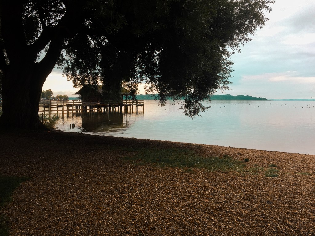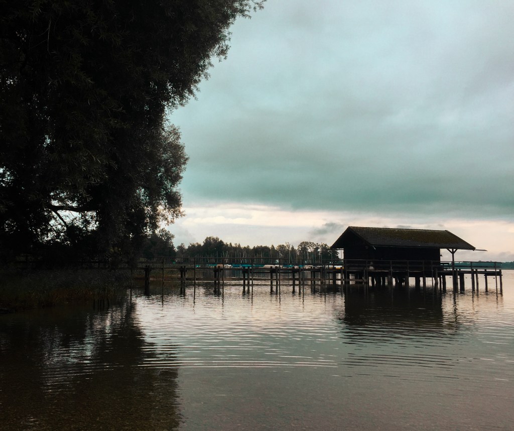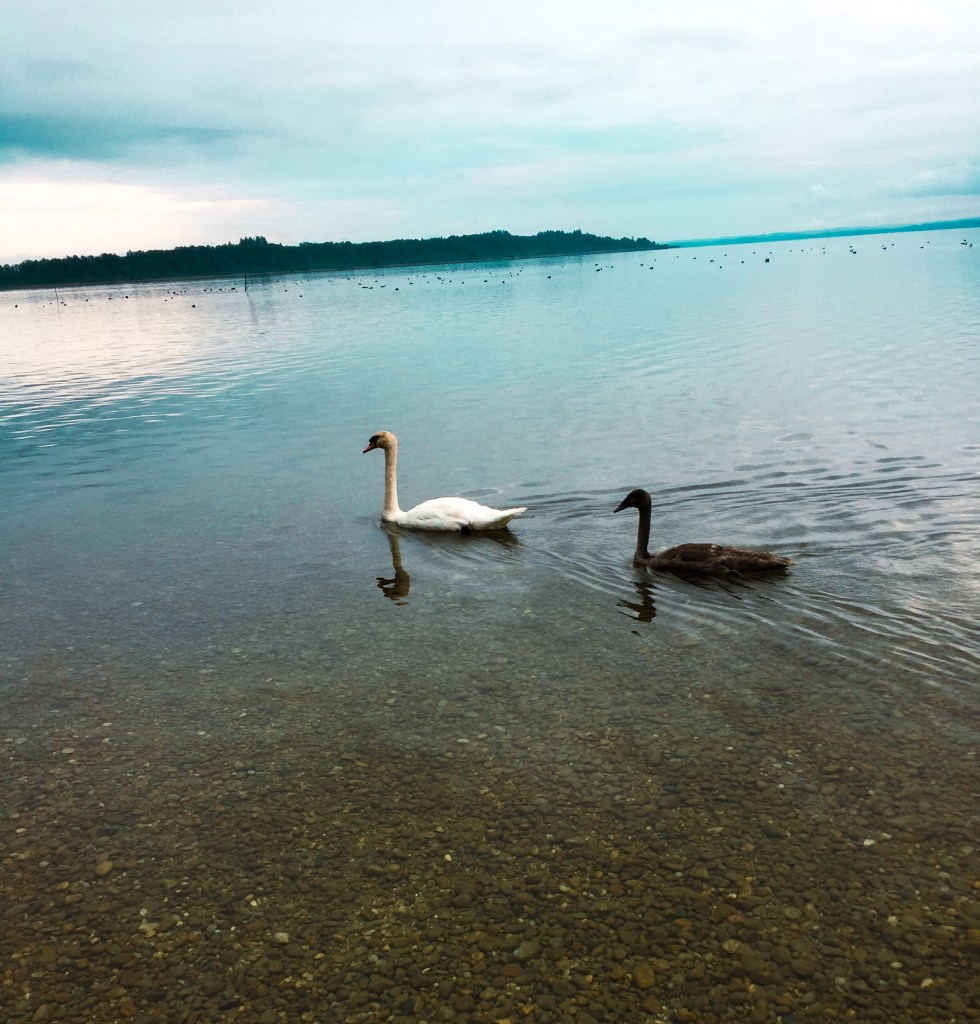We woke up at about 7 o’clock and walked from the parking lot to the lake. Chiemsee turned out to be a really big lake. We couldn’t see the end of it. We were all alone there so it was really quiet and peaceful. We really loved the view of the little cabin and the overhanging tree. The water was freezing cold so we only went in there with our feet 🙂