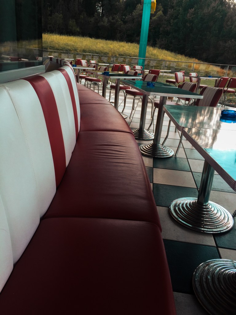 The place is called Maria’s diner and it instantly gave us the retro American diner vibes. I mean look at these red and white bench seats!